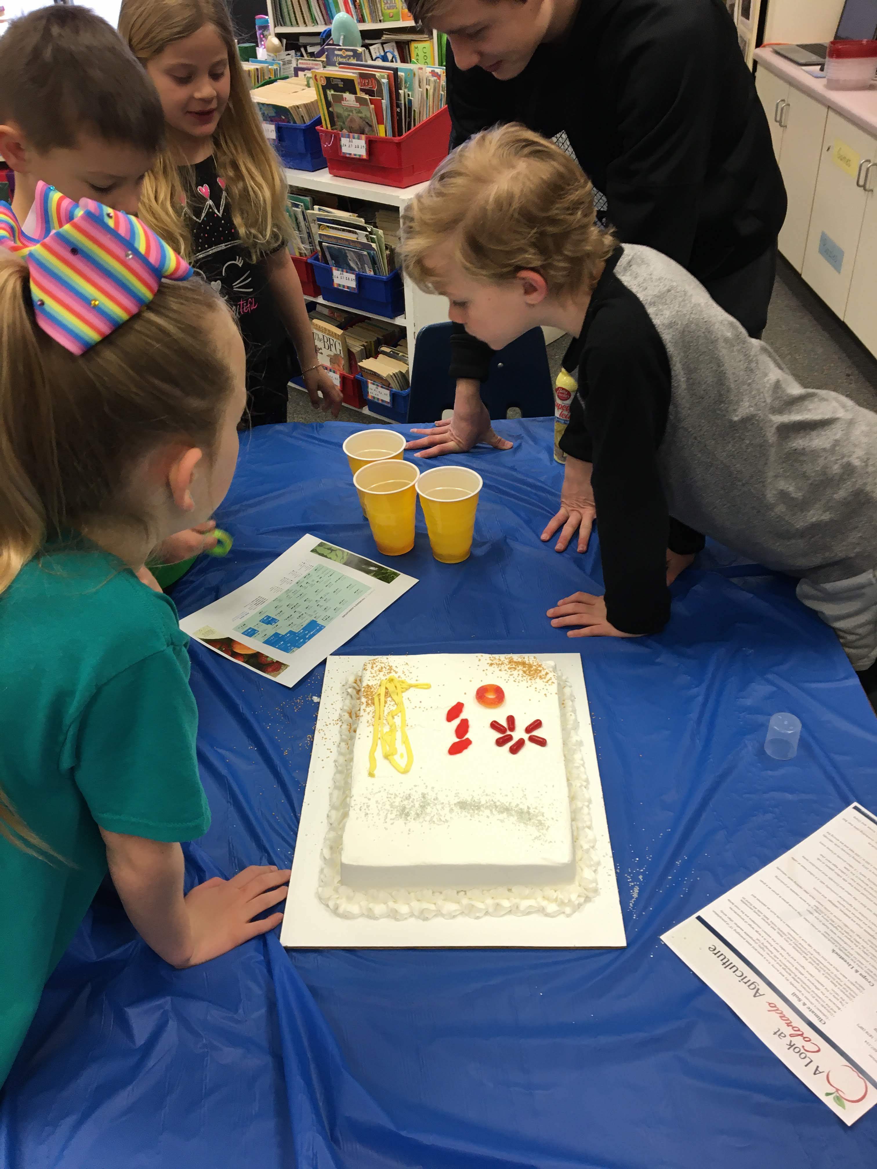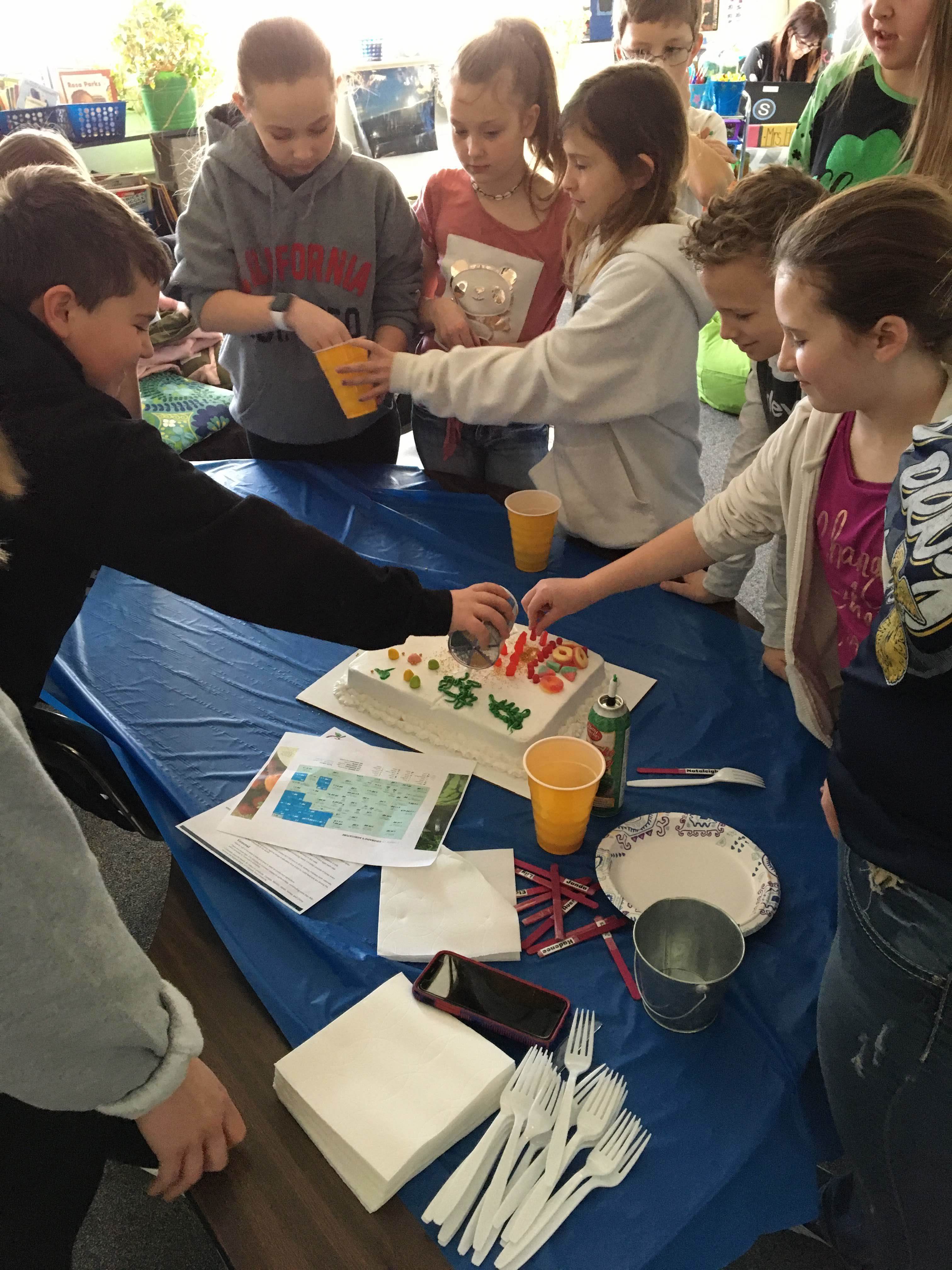 Peetz FFA members celebrated FFA Week on Wednesday by teaching elementary students about Colorado's agriculture production using cakes. From preschool to sixth grade, students created a map of agriculture production across our great state. From cattle to fish and wheat to peaches, Colorado produces a diverse amount of Ag commodities. Students also learned about the geographical regions in Colorado that allows us to produce cherries and peaches, along with the state's aquaculture production of fish. It all wrapped up by consuming their creations and enjoying some sweet treats all provided by our Agriculture producers!!