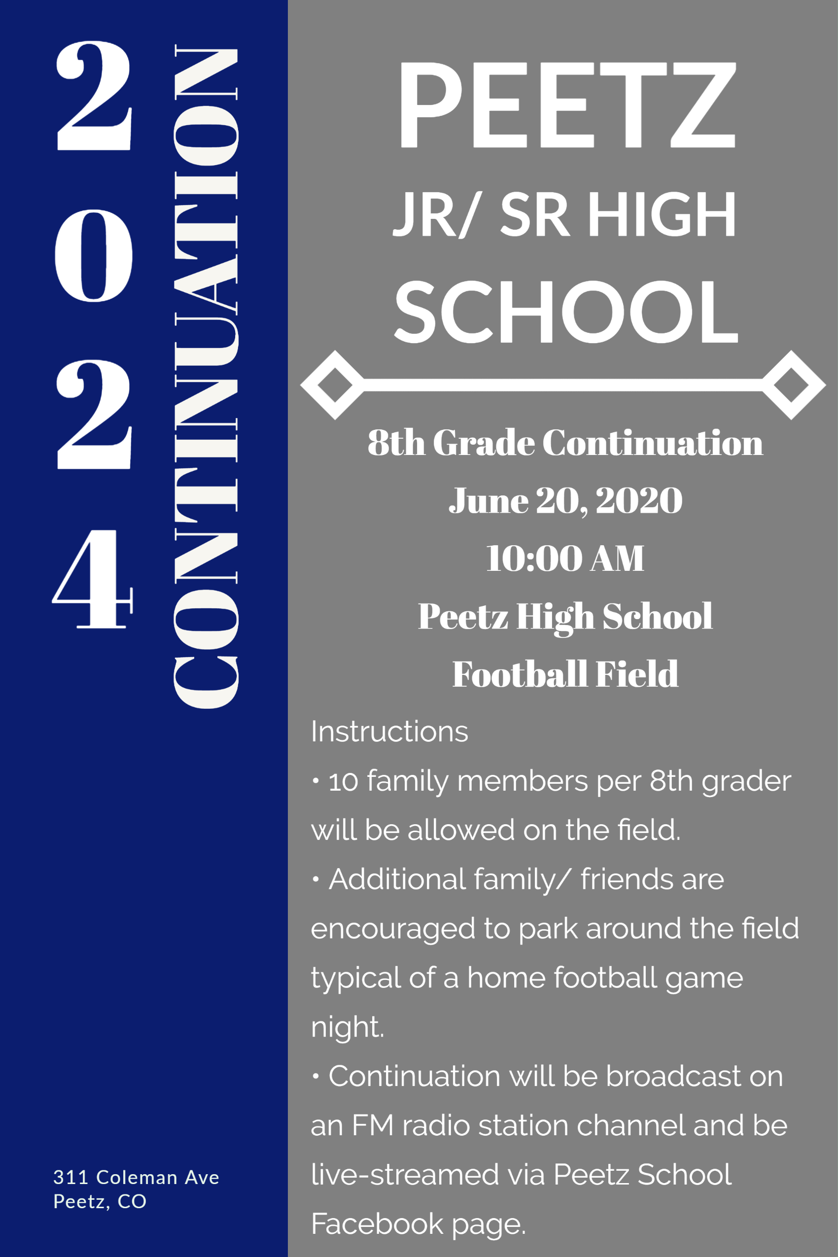 Peetz JR/SR High School announces plans for Graduation and Eighth Grade Continuation.