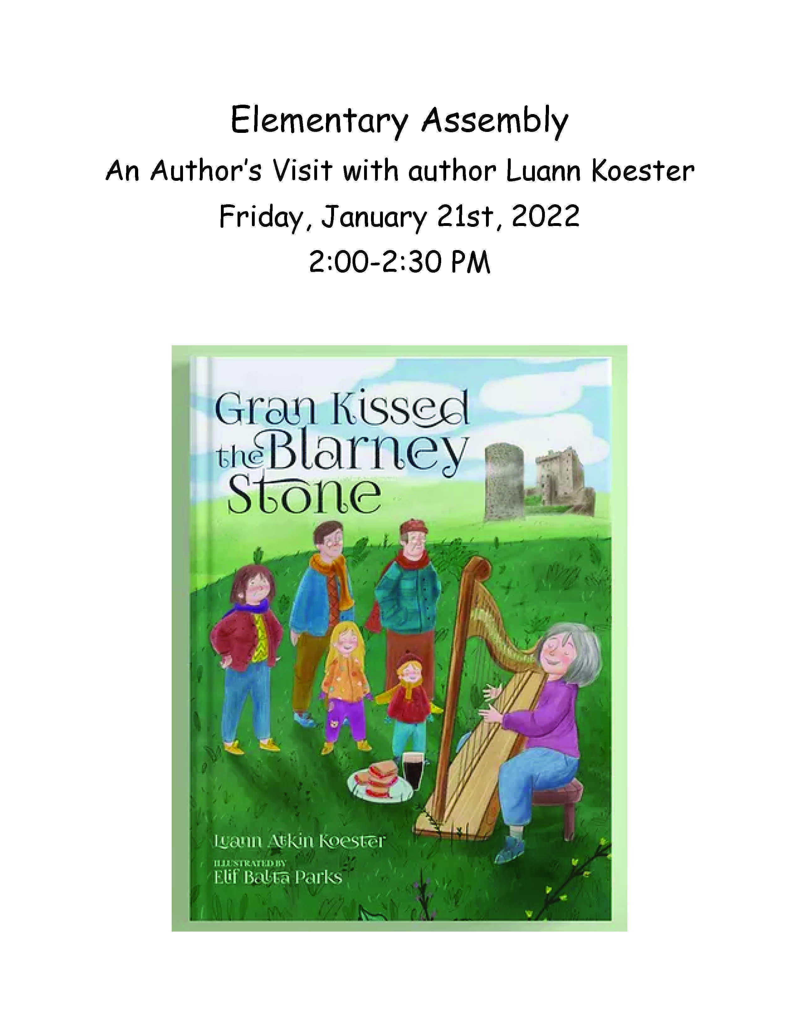Luann Atkin Koester will be facilitating a series of writer workshops for 7-12 Grades from 8-2:00 on January 21, 2022.