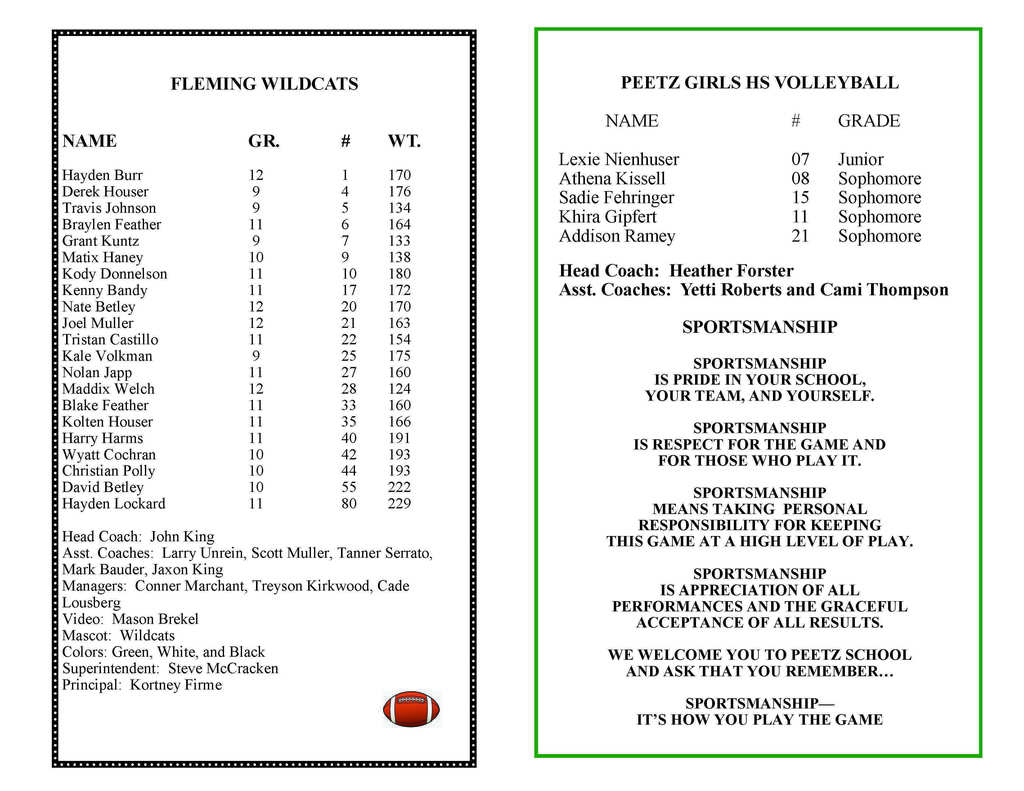 SPORTS ROSTERS for today's Football and Volleyball games vs Fleming. Click on the link for PDF file or view the images - https://drive.google.com/file/d/15G_rkvuERCwMHRVLtqKXkUm3KrggsTrM/view?usp=sharing